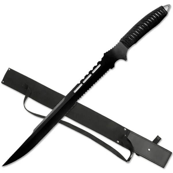 - FULL TANG BLACK CORD WRAPPED STAINLESS STEEL HANDLE