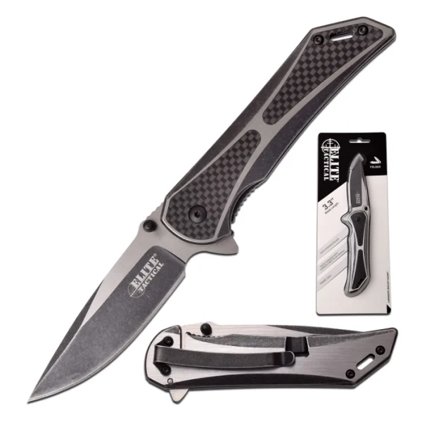 • SPECIAL FEATURES: Pocket Clip, Dual Thumb Studs, Stainless Steel and Carbon Fiber Handle.
