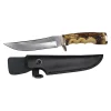 • SPECIAL FEATURES: Fixed Blade Knife, Faux Jig Bone Handle with Gold Metal Bolster and End Cap, Genuine Leather Sheath.