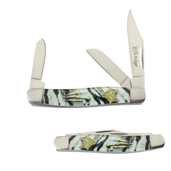 • HIGH QUALITY MATERIALS: Made from quality materials. 3CR13 satin finish stainless steel clip point, sheepsfoot and spey blades provide an excellent balance of hardness and corrosion resistance.