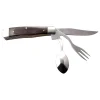- SPECIAL FEATURES: Multi-Function Pocket Knife, Fork, Spoon and Bottle Opener, Brown Wood Handle. Wood Handle Can Be Disassembled and Reassembled Into a Pocket Knife Without the Additional Utensils if Desired.