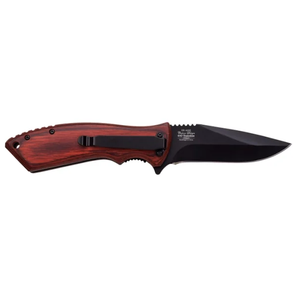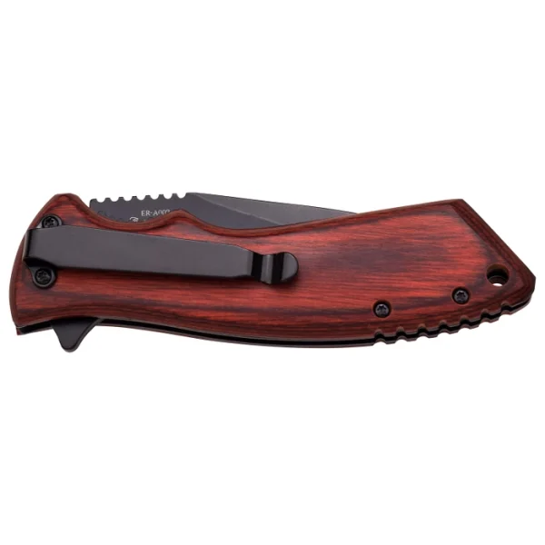 - SPECIAL FEATURES: Spring Assisted Knife, Liner Lock, Dark Brown Wood Handle with Pocket Clip.