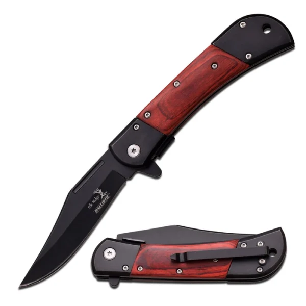 - SPECIAL FEATURES: Spring Assisted Folding Knife, Liner Lock, Brown Wood Handle with Black Stainless Steel Bolsters, Pocket Clip.