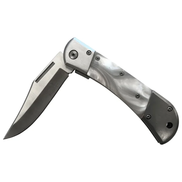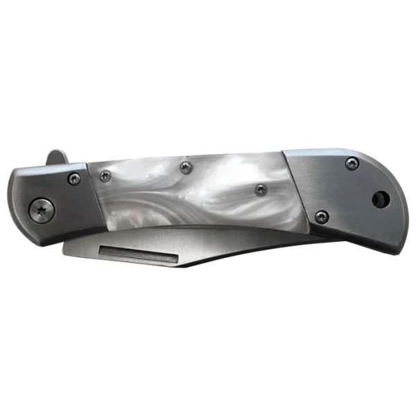- SPECIAL FEATURES: Spring Assisted Folding Knife, Liner Lock, Faux Mother of Pearl Handle with Stainless Steel Bolsters, Pocket Clip.