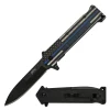 - SPECIAL FEATURES: Spring Assisted Open, Finger Flipper, Liner Lock, Black Oxidized Stainless Steel Blade, Injection Molded ABS Handle with Embossed “The Thin Blue Line” Graphic and Pocket Clip.