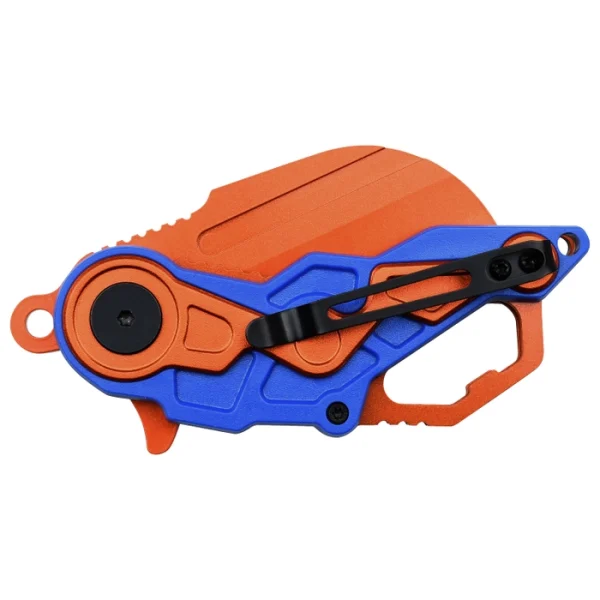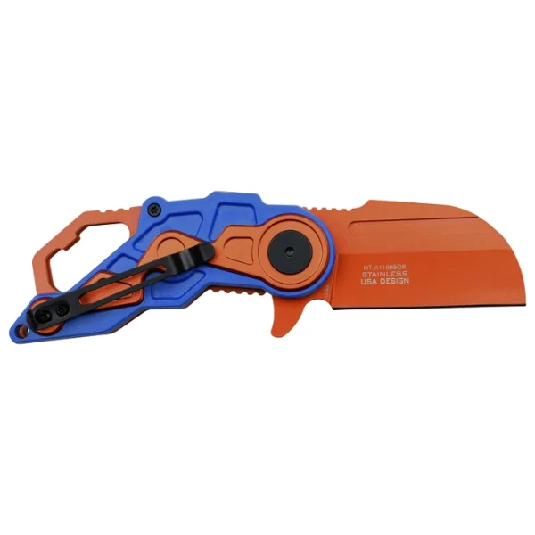 - SPECIAL FEATURES: Orange Stainless Steel Wharncliffe Blade, Orange and Blue ABS Handle with Bottle Opener, Liner Lock and Pocket Clip.