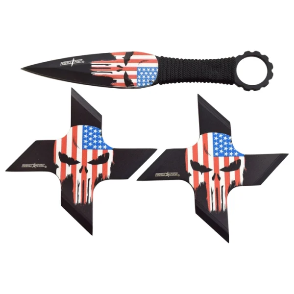 - 6.5″ THROWING KNIFE, 2 PC 4″ THROWING STARS