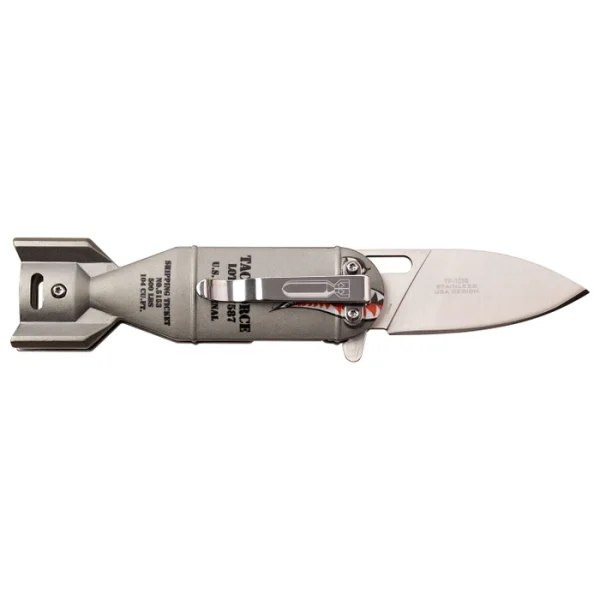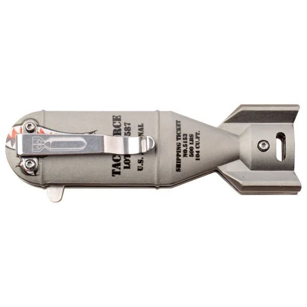 - 4″ ANODIZED ALUMINUM HANDLE, BOMB ARTWORK