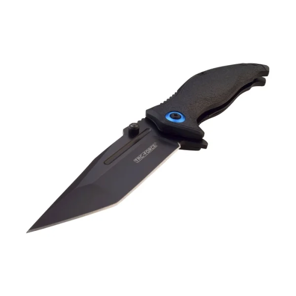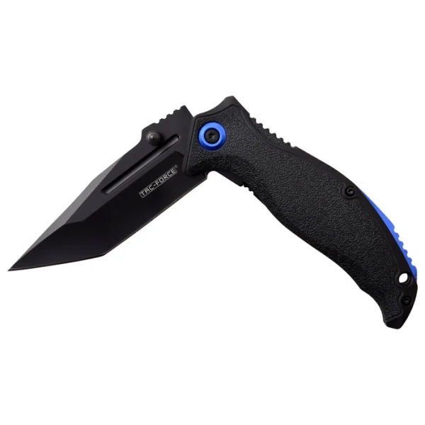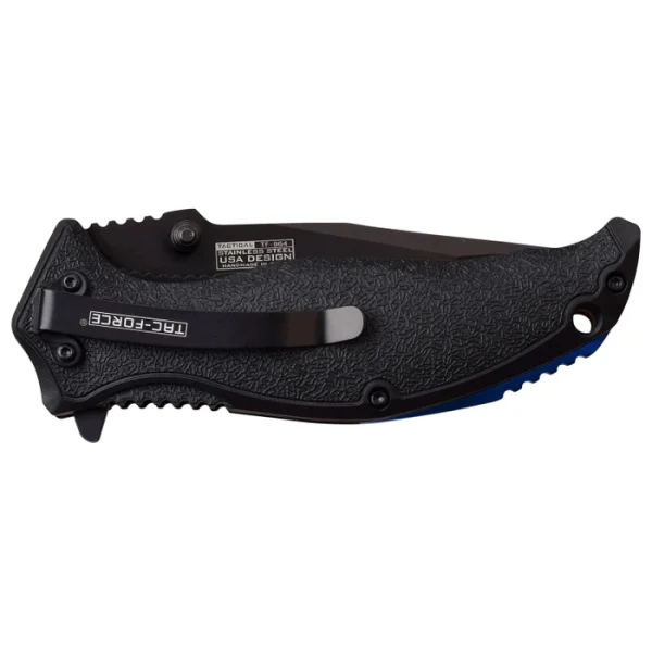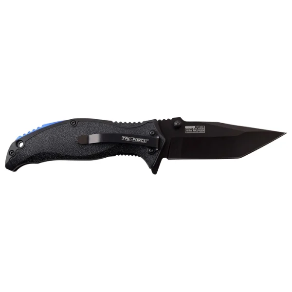 - SPECIAL FEATURES: Spring Assisted, Finger Flipper, Black Injection Molded Nylon Fiber Handle with Blue Aluminum Back Spacer, Liner Lock, and Pocket Clip.